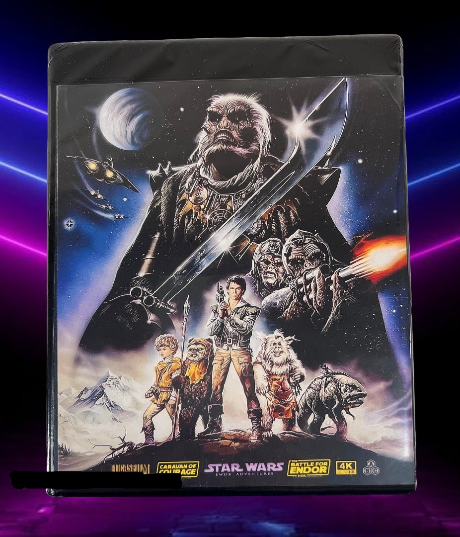4K UHD Blu-ray 2-Disc Set All audio & video technical details listed below A ‘4K UHD Blu-ray player' is required for playback Region-Free for all 4K UHD Blu-ray players (Worldwide) Your order will ship immediately packaged securely in a shipping box and tracking details emailed to you as well. 4K UHD: Ultra High-Definition Blu-ray (3840x2160p video) **A 4K Ultra HD Blu-ray player is required for both discs **Tested and compatible with PS5 and Xbox Series X. Disc 1 -- Caravan Of Courage (Original 4:3 aspect ratio) (4K Ultra HD 2160p Blu-ray video) (1984 original) (Length 1h 37m) Audio options: English Dolby Digital 2.0. Subtitle options: English SDH Disc 2 -- The Battle For Endor (Original 4:3 aspect ratio) (4K Ultra HD 2160p Blu-ray video) (1985 original) (Length 1h 37m) Audio options: English Dolby Digital 2.0. Subtitle options: English SDH [4K fan-made preservation] Enjoy both Star Wars themed American TV Film classics in stunning 4K Ultra HD. Both discs have menus & chapter selection. Caravan of Courage: An Ewok Adventure (1984) follows the Towani family, whose spaceship crashes on Endor, separating siblings Mace and Cindel from their parents, who are then captured by the giant monster Gorax. The children team up with the furry Ewoks, led by Wicket, to form a caravan and journey across the dangerous moon to rescue their parents, battling the Gorax in a classic hero's quest for survival and reunion. The Battle for Endor: Ewok Adventure (1985): After an evil band of Marauders attacks the Ewok village, Wicket and young Cindel escape and befriend hermit Noa and his fast companion Teek, leading to a fight to rescue Cindel's family and free the captured Ewoks from the Marauder leader King Terak and his witch Charal. The film follows Cindel and Wicket's adventures as they team up with Noa, a fellow crash survivor, to defeat the villains and save their friends in a darker sequel to Caravan of Courage.
