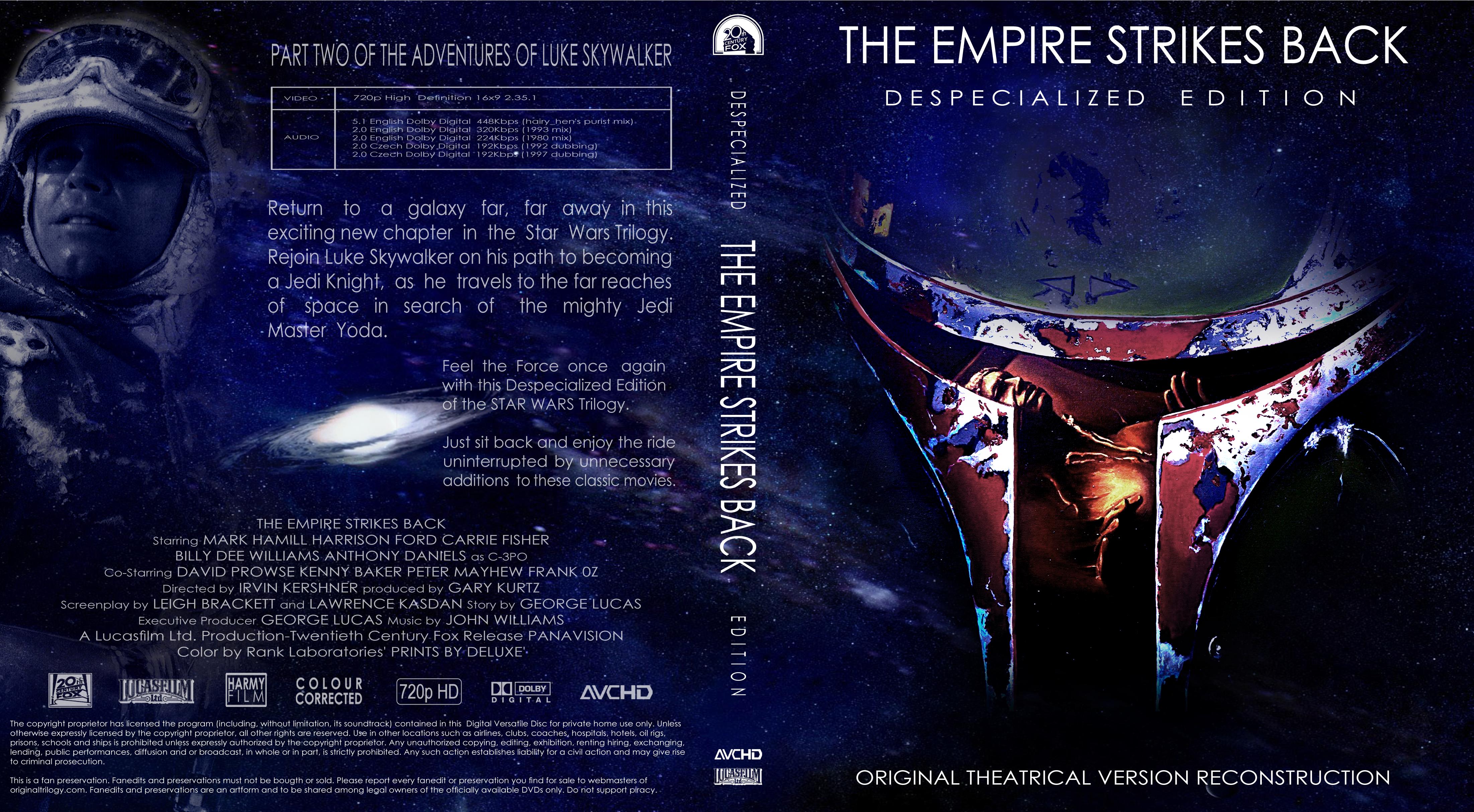 Star Wars: The Despecialized Edition, also known as Harmy's Despecialized Edition, is a fan-created film preservation of the original Star Wars trilogy films: Star Wars (1977), The Empire Strikes Back (1980), and Return of the Jedi (1983). It is a high-quality replica of the out-of-print theatrical versions, created by a team of Star Wars fans with the intention of preserving the films, culturally and historically.